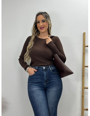 Camiseta de manga larga con detalle de pico en el lado izquierdo y encaje alrededor. Tejido cálido suave y adaptable.