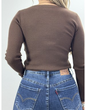 Camiseta de manga larga con escote en forma de pico y detalle de encaje alrededor. Tejido cálido y adaptable.