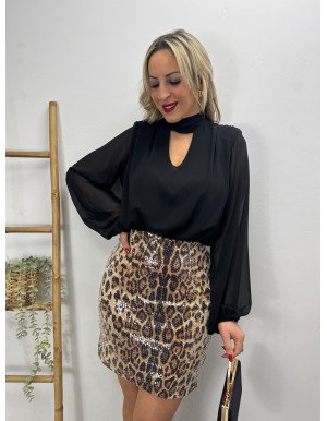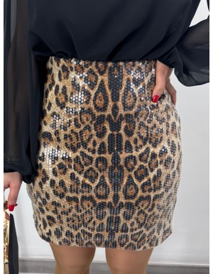 Falda de lentejuelas de estampado animal con forro en el interior. Tejido muy elástico y adaptable.