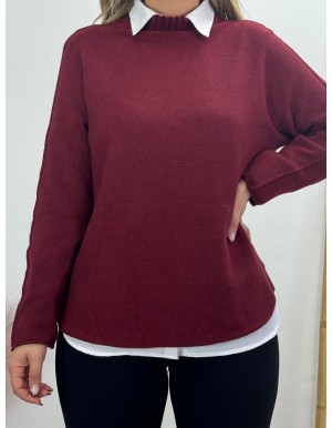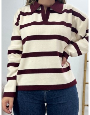 Jersey de lana modelo oversize con detalle de lineas en horizontal. Tejido cálido, suave y adaptable.