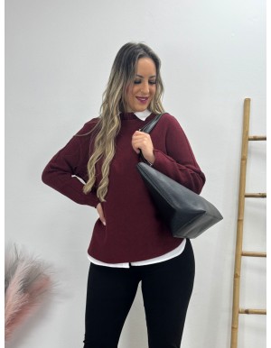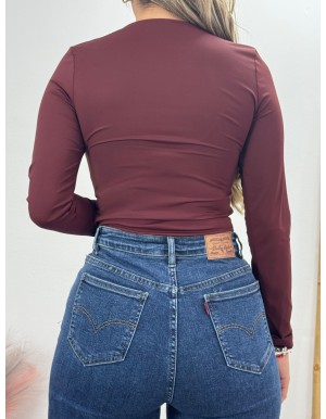 Camiseta de manga larga con escote en forma de pico y detalle de encaje alrededor. Tejido cálido y adaptable.