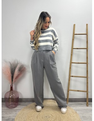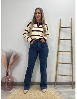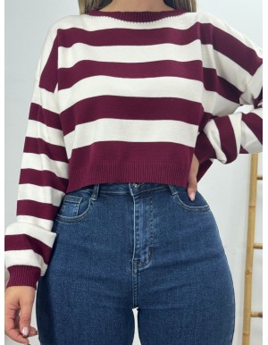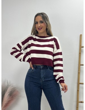 Jersey de punto corto de rayas, modelo oversize. Tejido cálido suave y muy adaptable.