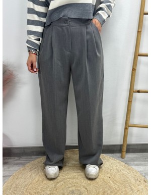 Pantalón recto de pinza modelo ancho de talle super alto con cinturilla fruncida y elástica. Bolsillos a los lados.