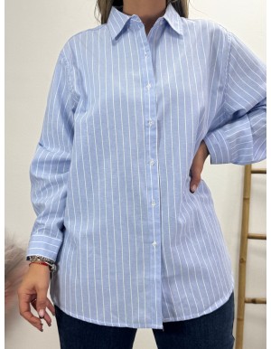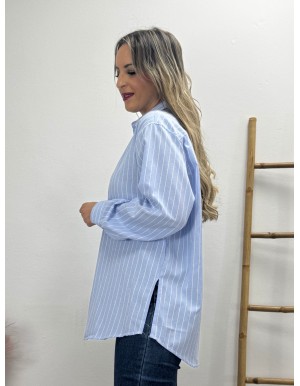 Camisa abotonada modelo oversize con escote en forma de pico y mangas anchas. Tejido suave y cómodo.