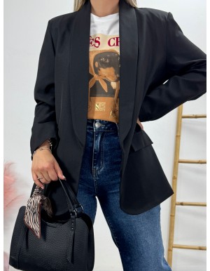 Chaqueta americana abierta, modelo oversize con detalles de bolsillos y forro en el interior.