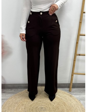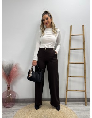 Pantalón recto de tela de talle super alto con cinturilla fruncida y elástica. Bolsillos a los lados.