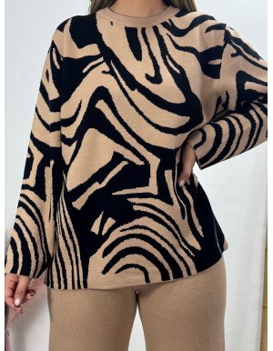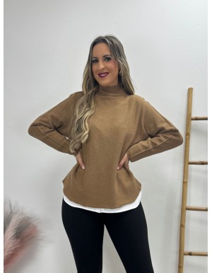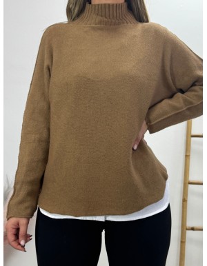 Jersey de punto modelo oversize con cuello alto y abertura en los lados. Tejido cálido, suave y adaptable.