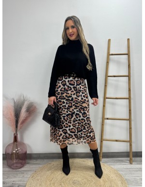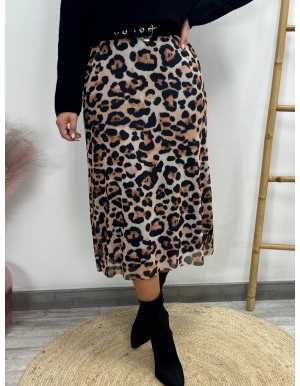 Falda midi de transparencias en estampado animal. Cinturilla elástica. Tejido adaptable y cómodo.
