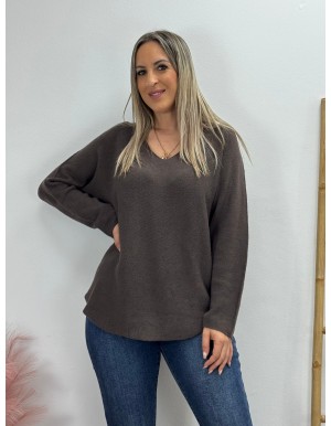 Jersey largo de lana fina modelo oversize con escote en forma de pico. Tejido muy cálido, suave y adaptable.