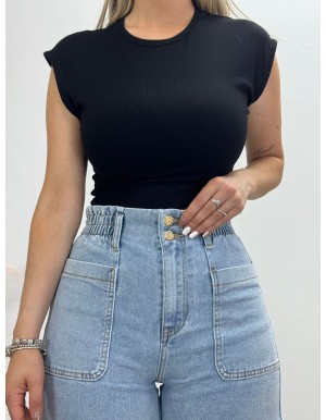 Body básico con cuello a la caja de tejido de canalé muy cómodo elástico y adaptable.