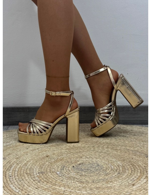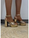 Sandalias tacón ancho con tiras, plataforma delantera 6 cm. Cierre en el tobillo. Muy cómodos y ligeros.