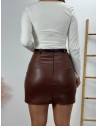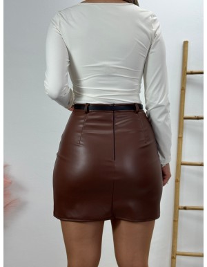 Camiseta de manga larga con super escote y detalle de broche en el medio. Tejido elástico y adaptable.