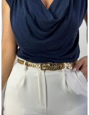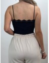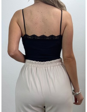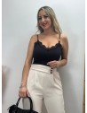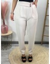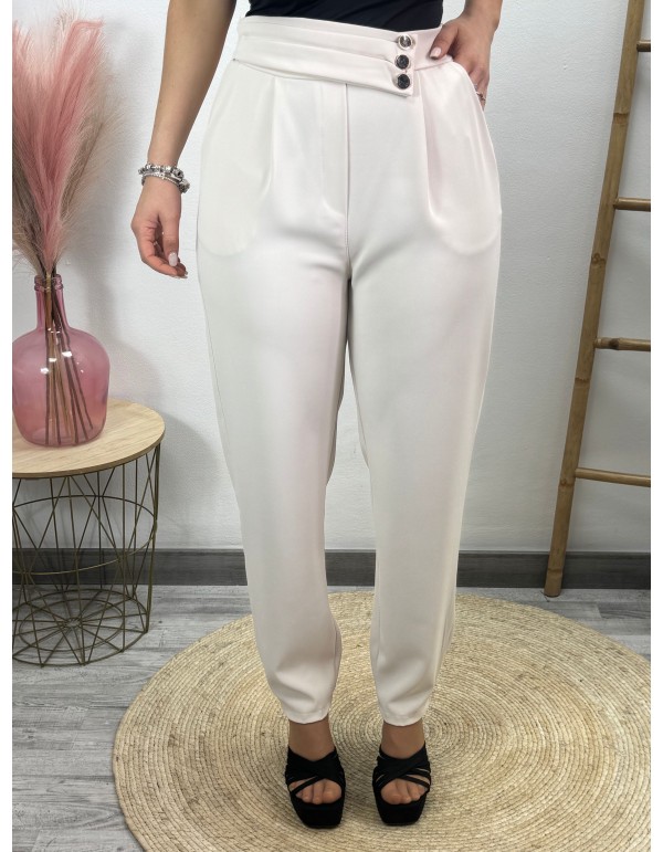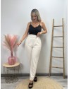 Pantalón de pinza de talle súper alto con bolsillos, cinturilla elástica y detalle de fajín con botones en el lado izquierdo. Tejido de tela.