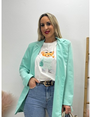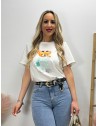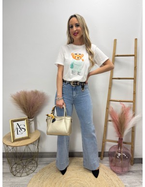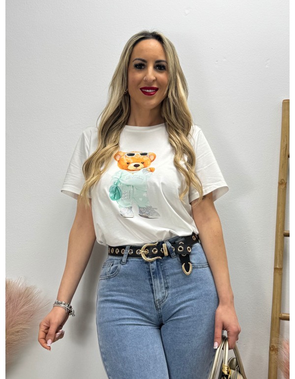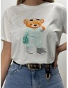 Camiseta de manga corta modelo Oversize con dibujo de oso y detalles plateados. Tejido muy elástico y adaptable.